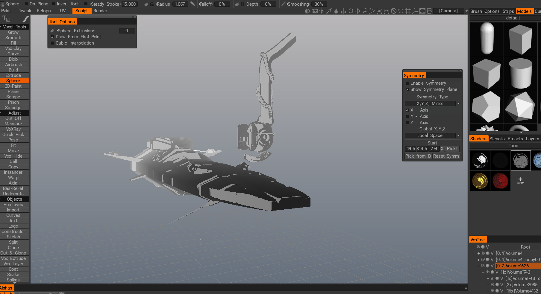Some images are the result of a single days effort, others several days worth. Created with any of the following software- 3d coat, Blender, Zbrush, Octane, Gravity Sketch, Oculus Medium, KeyShot, Photoshop.